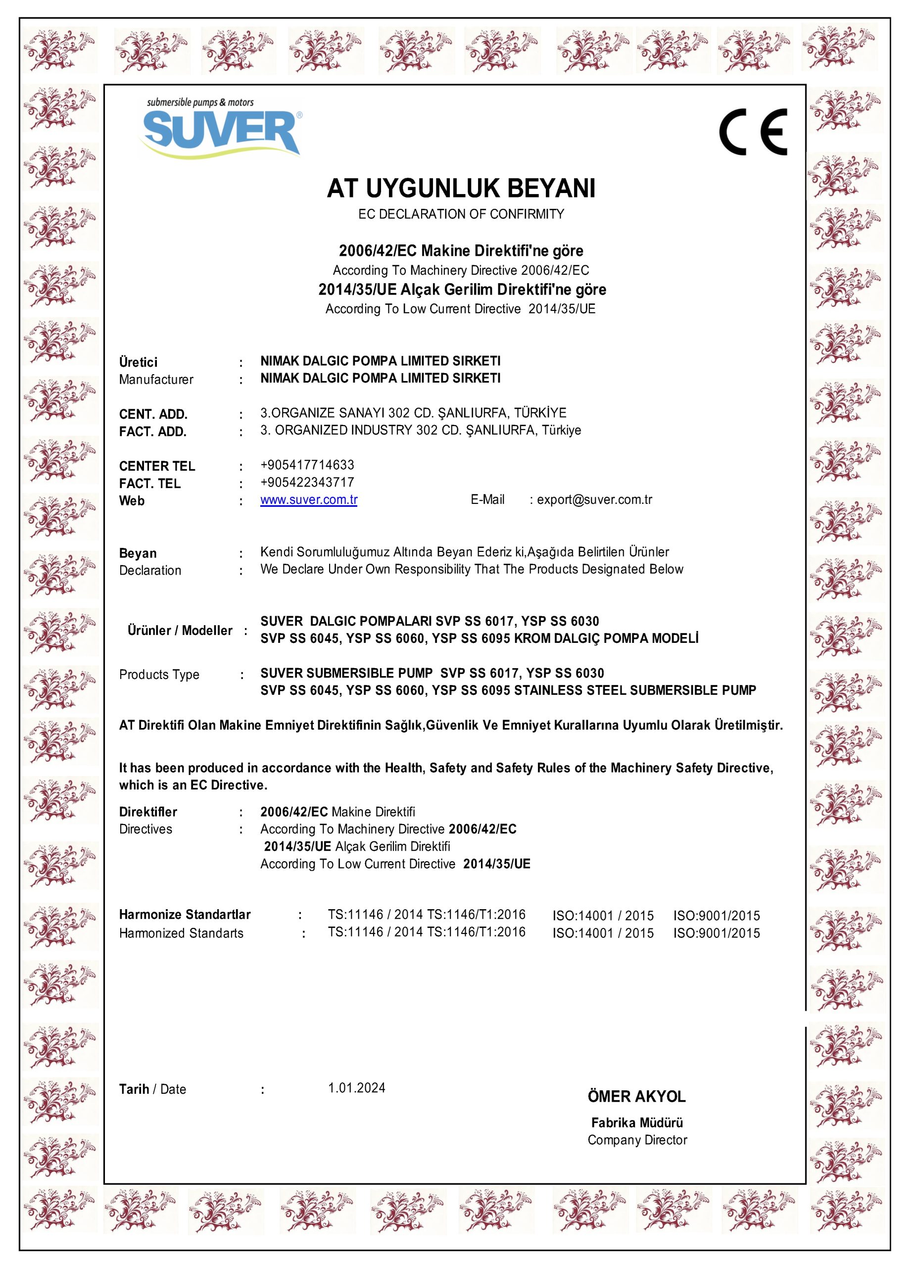 ISO 9001:2015 Kalite Yönetim Sistemi, ISO 14001:2015 Çevre Yönetim Sistemi ve ISO 45001:2018 İş Sağlığı ve Güvenliği Yönetim Sistemi standartları doğrultusunda yapılandırılmış Entegre Yönetim Sistemimiz ile süreçlerimizi sürekli iyileştiriyor, çalışanlarımızın sağlığı ve güvenliğini önemsiyor, çevreye duyarlı üretim gerçekleştiriyor ve tüm yasal yükümlülüklerimizi eksiksiz yerine getiriyoruz.